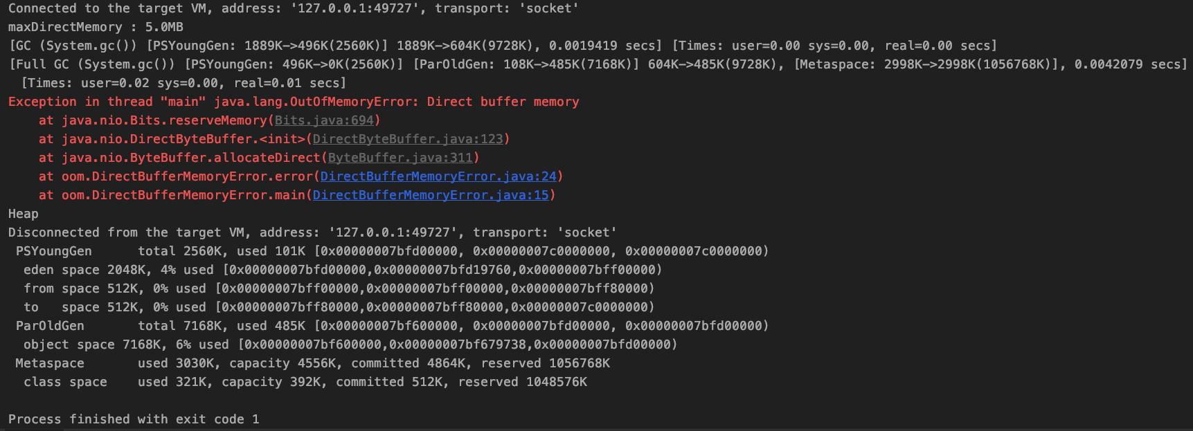 Direct ByteBuffer 的默认大小为 64 MB ,一旦使用超出限制,就会抛出 Directbuffer memory 错误。
