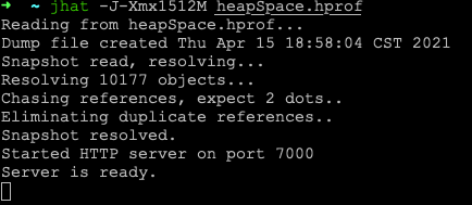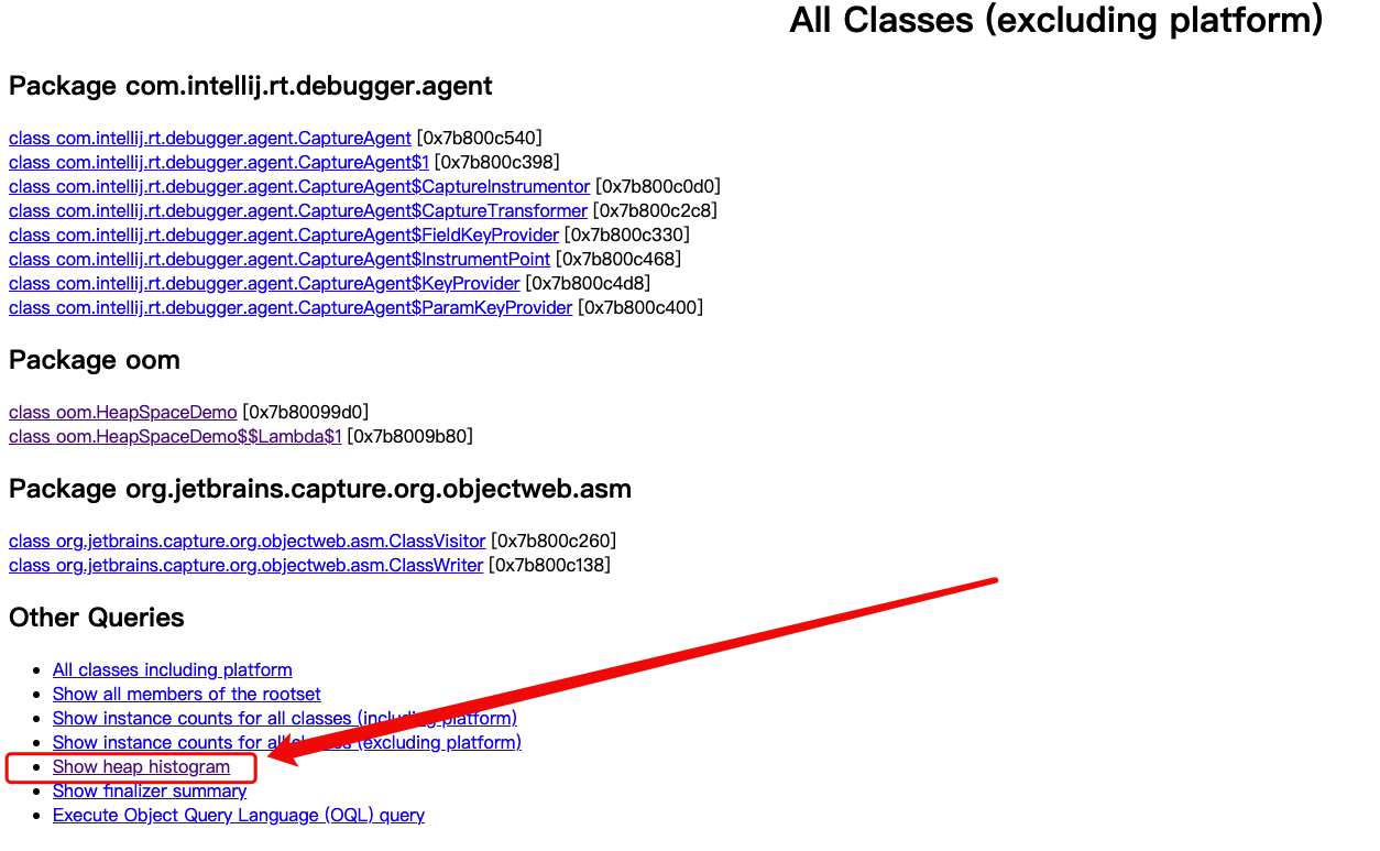 3.2、如果 dump 文件较小,也可以 java 自带的工具 jhat 命令进行分析。