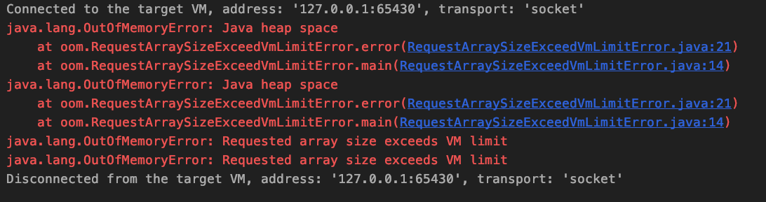 JVM 限制了数组的最大长度,该错误表示程序请求创建的数组超过最大长度限制。