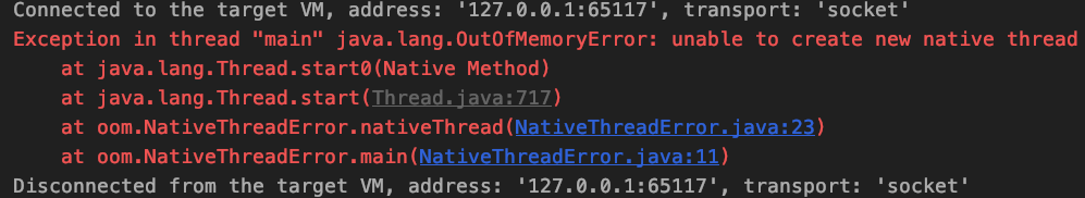 JVM 将抛出 java.lang.OutOfMemoryError:Unableto createnewnativethread 错误。