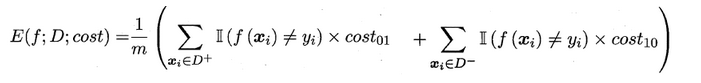 在非均等错误代价下,我们希望的是最小化 “总体代价”,这样 “代价敏感” 的错误率为: