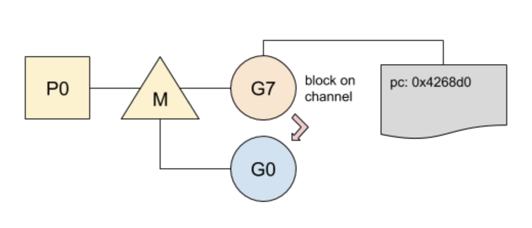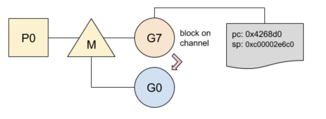 当前 g 阻塞在 chan 上并切换到 g0 :
