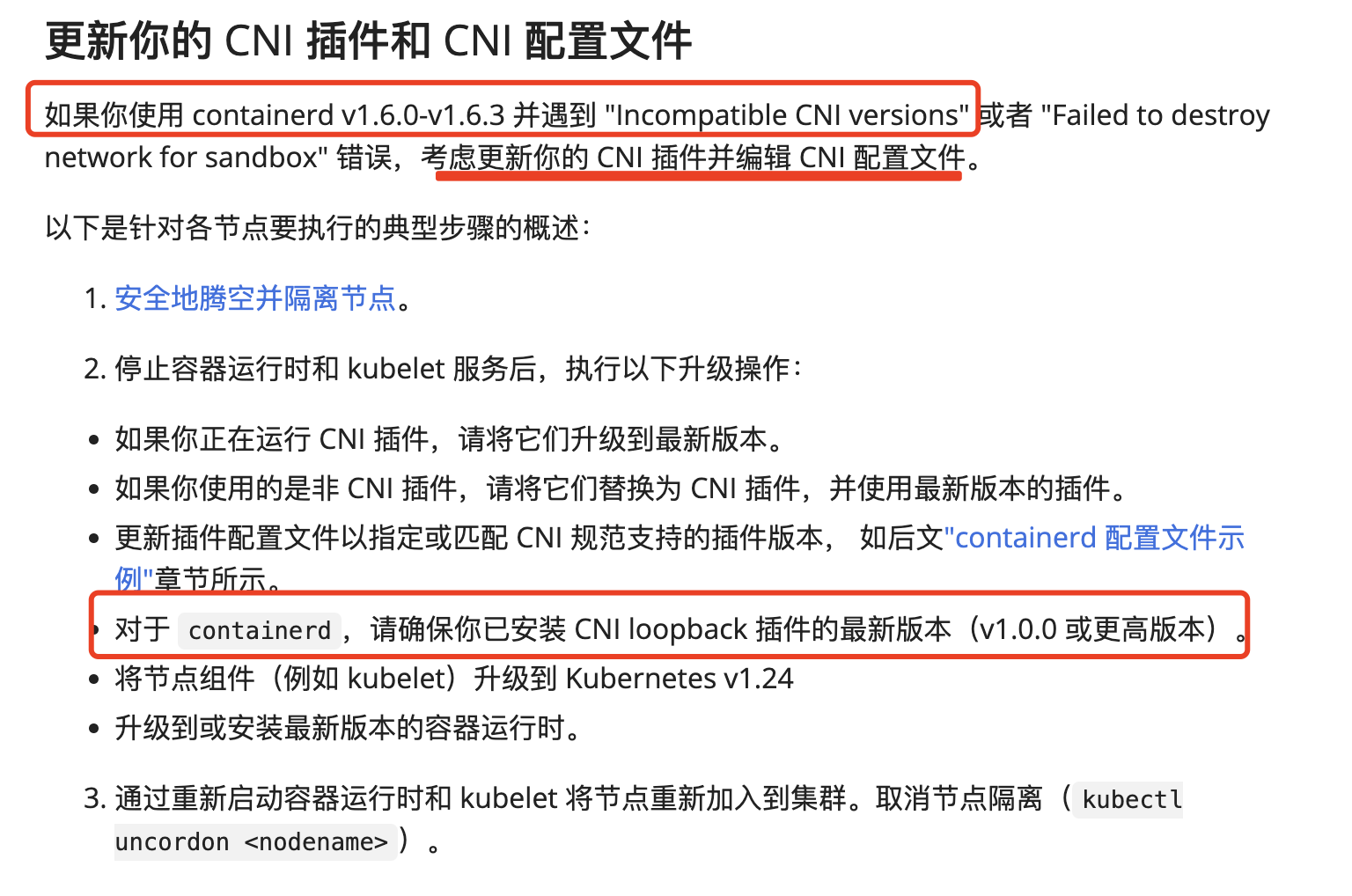 <=1.6.3那么就需要升级contrainerd运行环境. - 如果还有这样的问题,那就是要看下对应的插件类型是否满足版本要求了。